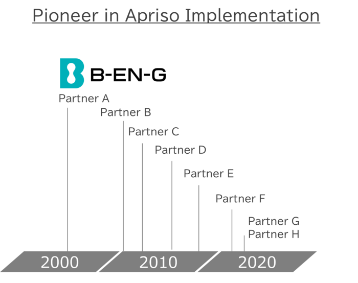 B-EN-G started its Apriso business in 2005 and was the first partner in Japan to successfully implement DELMIA Apriso as a prime contractor.